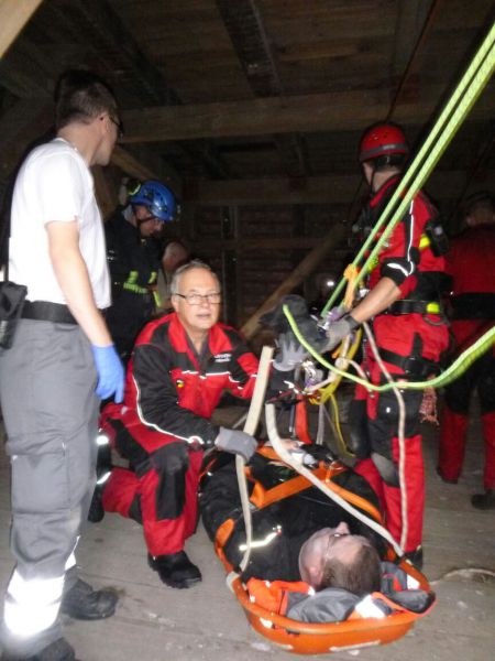 Nach der Begrüßung und Einteilung auf die Fahrzeuge wurden in Theorie und Praxis Standardvorgehensweisen im Einsatz als sogenannter "Spezieller Retter" geschult bzw. aufgefrischt.