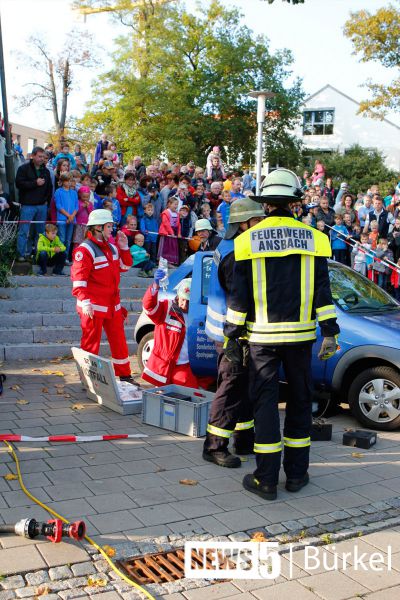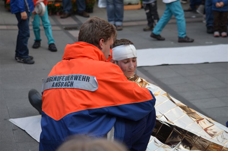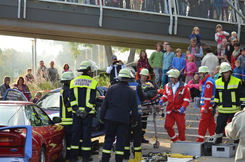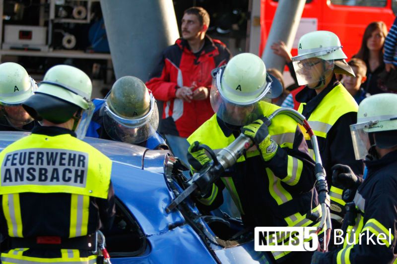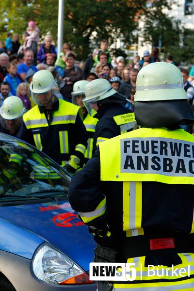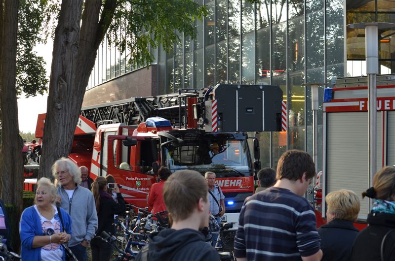 Als am Freitag abend gegen 17.00 Uhr im Stadtgebiet Ansbach die Sirenen heulten, rückte die gesamte Feuerwehr der Stadt Ansbach zu einer Schauübung auf das Gelände des Brückencenters aus.