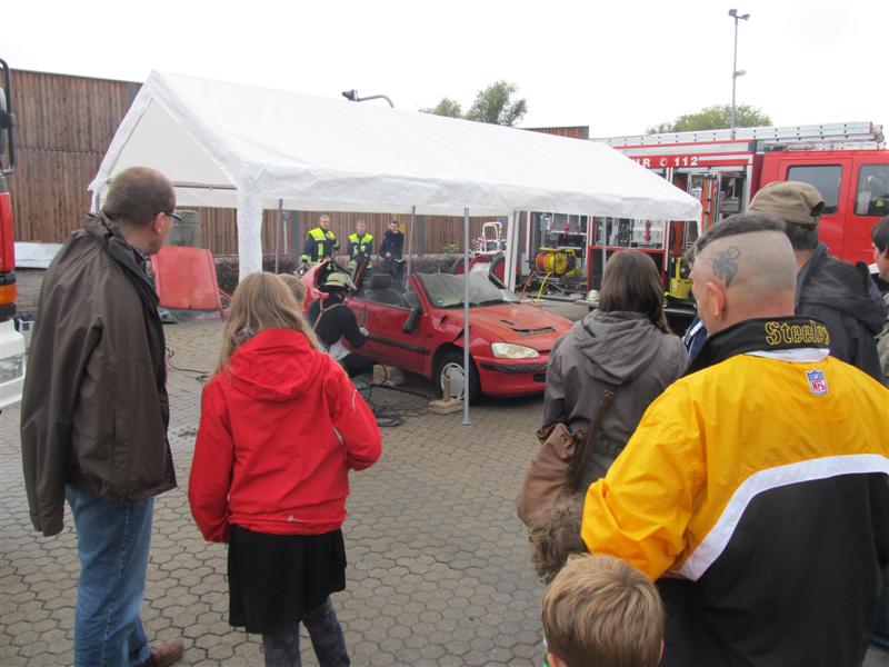 Die Besatzungen von Rüstwagen und HLF zeigten verschiedene Geräte und Rettungsvarianten, viele Besucher waren über die vielfältige und äusserst umfangreiche Beladung beeindruckt.