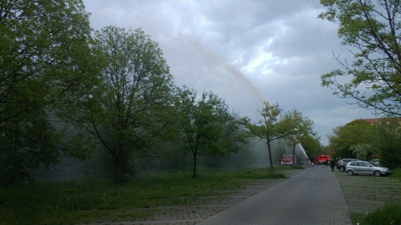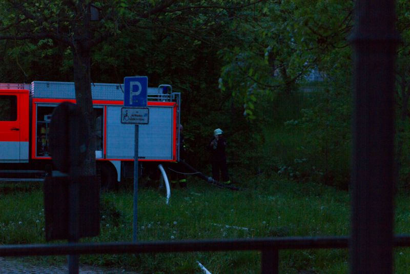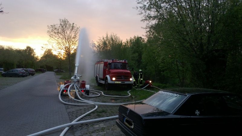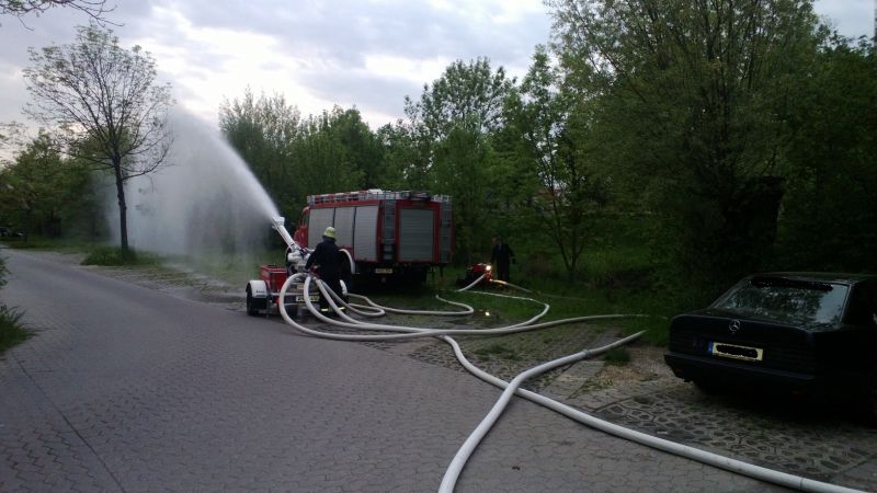 Ein Teil der Mannschaft betrieb mittels Tanklöschfahrzeug und Tragkraftspritze den Anhänger mit Schaum-Wasserwerfer.