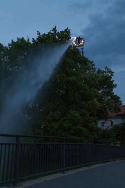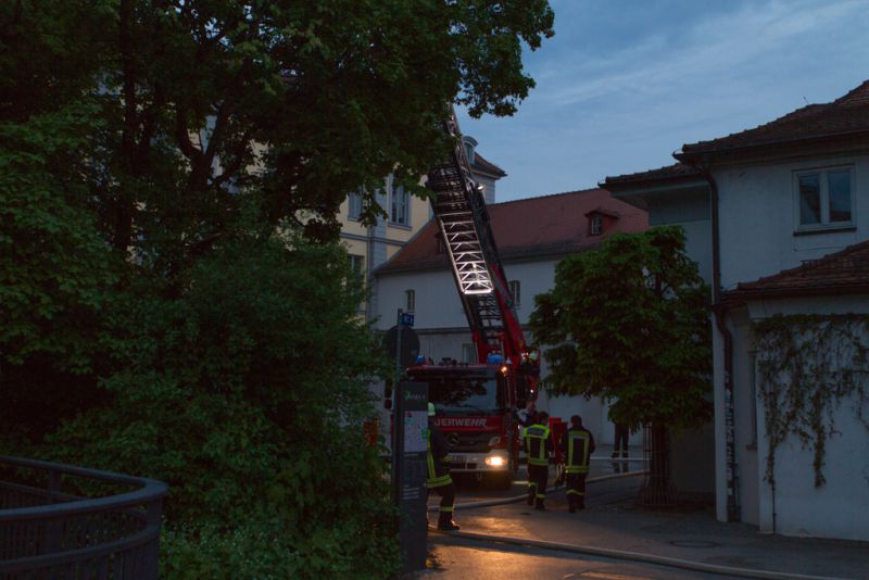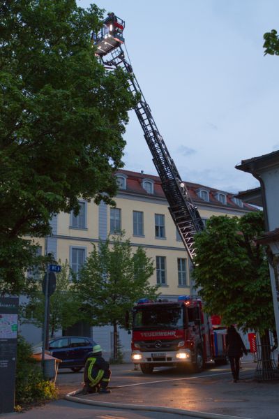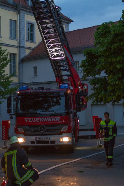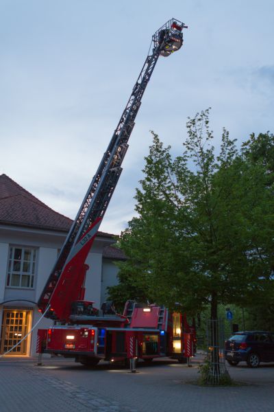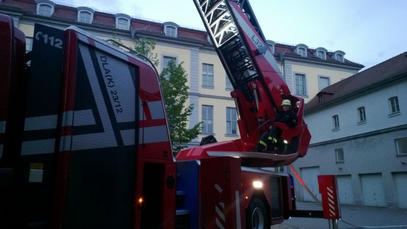 Die Drehleitermaschinisten jedoch greifen gern auf die Möglichkeit zurück, am Ansbacher Schloß schwerere Übungen durchzuführen. Die engen Durchfahrten und teils schlecht erreichbaren Gebäudeteile stellen eine willkommene Herausforderung dar - die richtige Positionierung des Fahrzeugs bedarf bei geringer Aufstellfläche einiger Erfahrung.