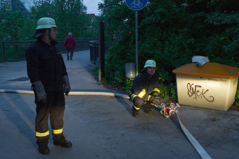 Einige Passanten liesen sich die Möglichkeit nicht entgehen, Detailfragen zu Menge und Druck des gefördertem Löschwassers sowie Wurfweiten der Wasserwerfer zu stellen, die wir selbstverständlich gerne beantwortet haben.
