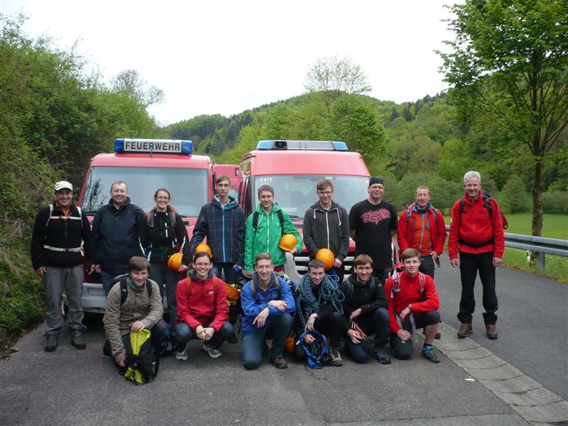 Die 9 Jugendlichen und 5 Betreuer, sowie 2 Kameraden der Höhenrettungsgruppe trafen sich um 16 Uhr auf der Feuerwache und fuhren gemeinsam ins Hirschbachtal, um dort gemeinsam ein Erlebniswochenende mit Wandern und Klettern zu verbringen.