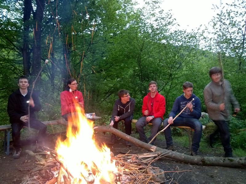Nachdem die Bande nun gesättigt war, suchten die Jugendlichen im angrenzenden Wald nach Feuerholz, schließlich musste die Lagerfeuerstätte ausprobiert werden.