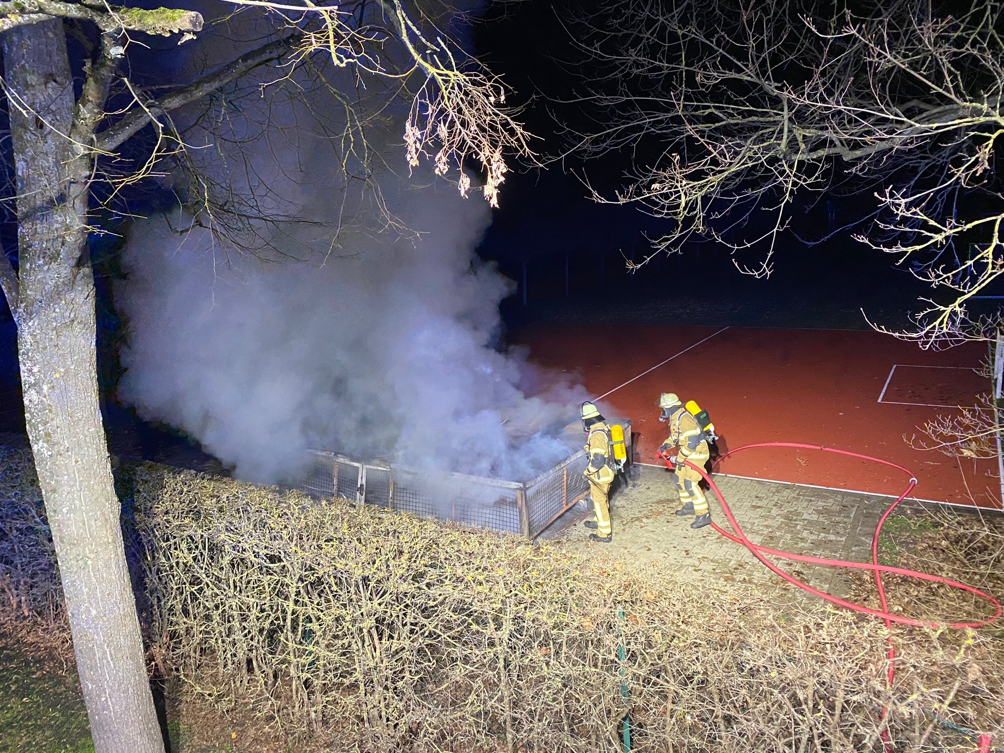 Noch auf der Rückfahrt zur Feuerwache Ansbach kam über die Integrierte Leistelle Ansbach (ILS AN) ein weiterer Einsatz für die Feuerwehr Ansbach herein. Das Einsatzstichwort lautet „Mülleimerbrand“ in der Richard-Wagner-Straße. Beim Eintreffen der Kräfte brannte eine grüne Papiertonne an der Hauswand.