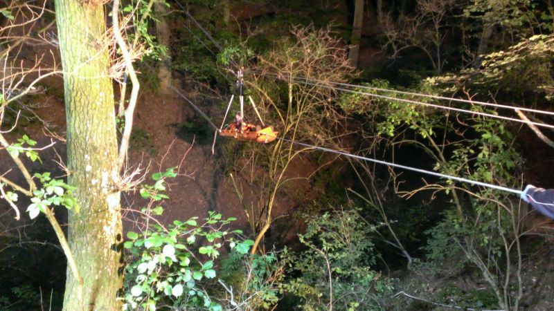 Vergangene Woche trainierte die HöRG in Egloffswinden das Retten mittels Seilbahn unter erschwerten Bedingungen.