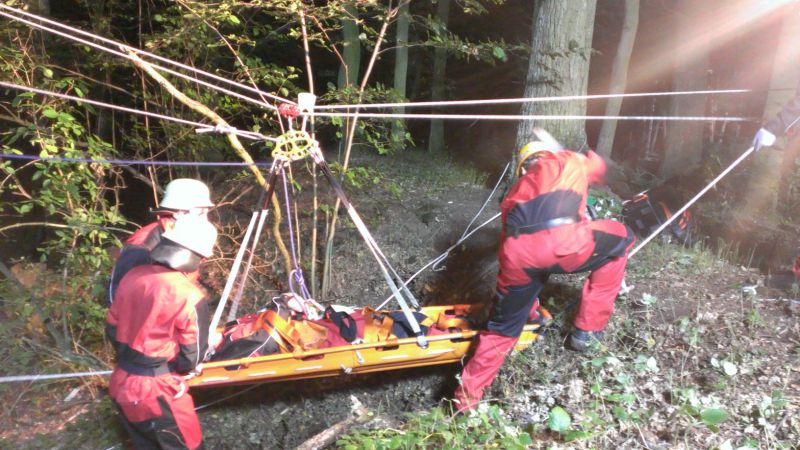 Bereits nach rund 40 Minuten konnte die Rettung und Übergabe des Patienten gemeldet werden - angesichts der Dunkelheit und schwierigen Örtlichkeit eine solide Leistung.