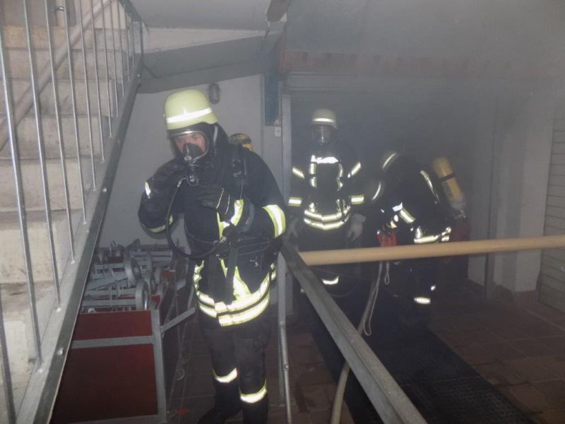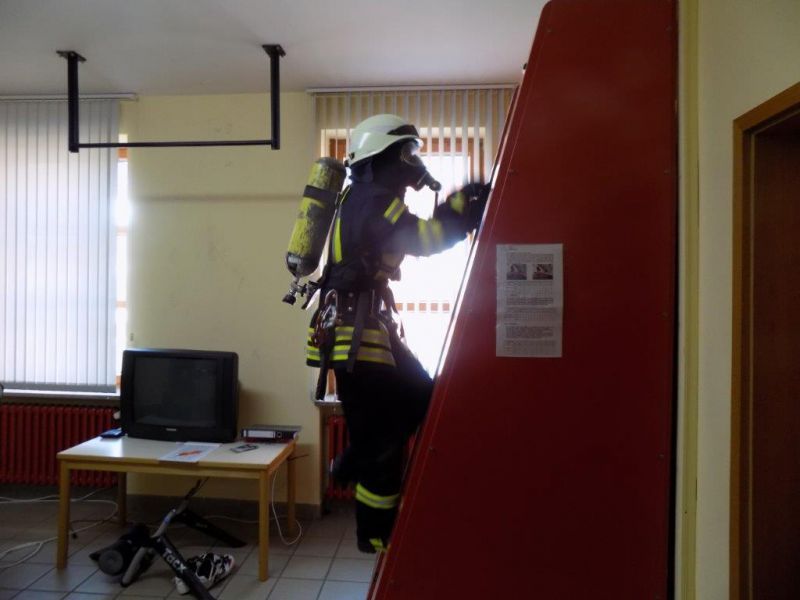 Den größten Teil des Lehrgangs nahm allerdings die praktische Ausbildung in Anspruch. Nach einer Einweisung in die Handhabung und den Umgang mit Filtergeräten und Pressluftatmern ging es zu Gewöhnungsübungen mit jeweils gesteigertem Schwierigkeits- und Belastungsgrad. Auch das Aufsuchen und Retten von Personen aus verqualmten Räumen sowie Notfalltraining und Umgang mit Gefahrensituationen stand auf dem Programm.