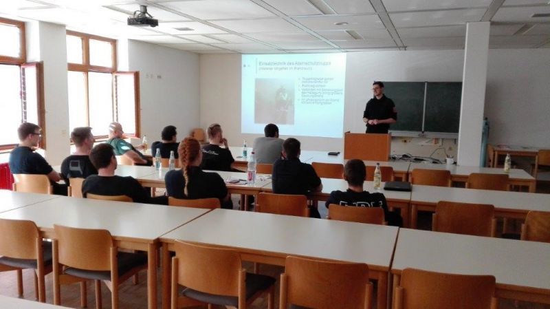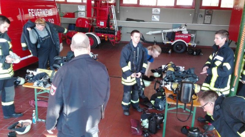 Acht Männer und eine Frau waren bereit, sich zunächst das theoretische Wissen über Atmung, Atemgifte und Atemschutzgeräte sowie über taktische Einsatzgrundsätze eines Atemschutzeinsatzes bei der Feuerwehr anzueignen.