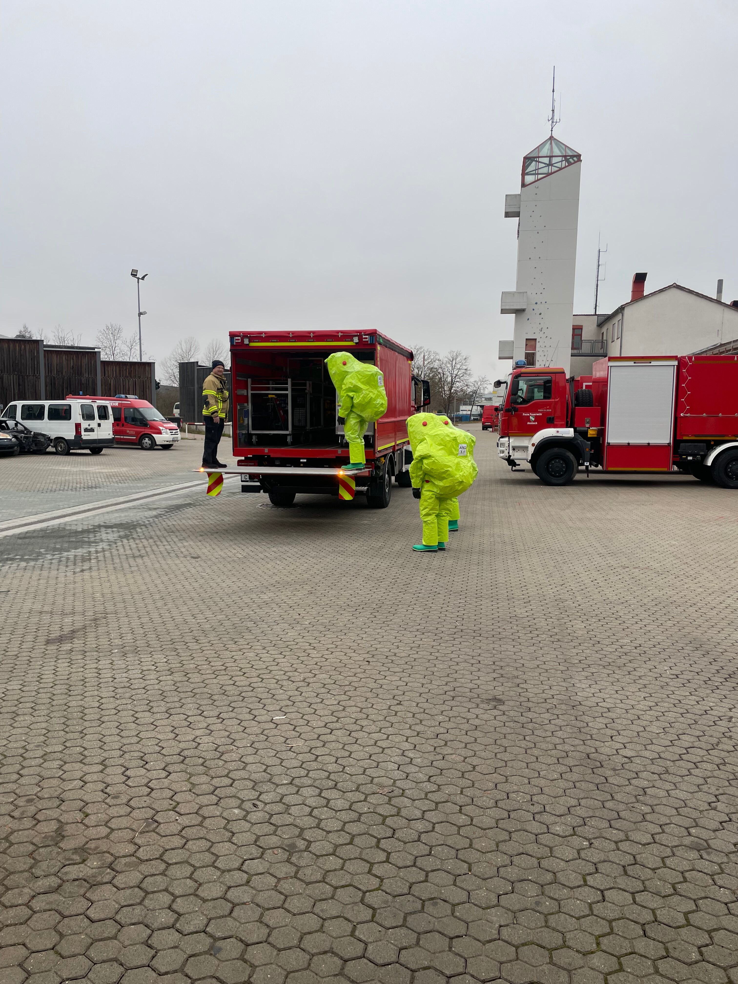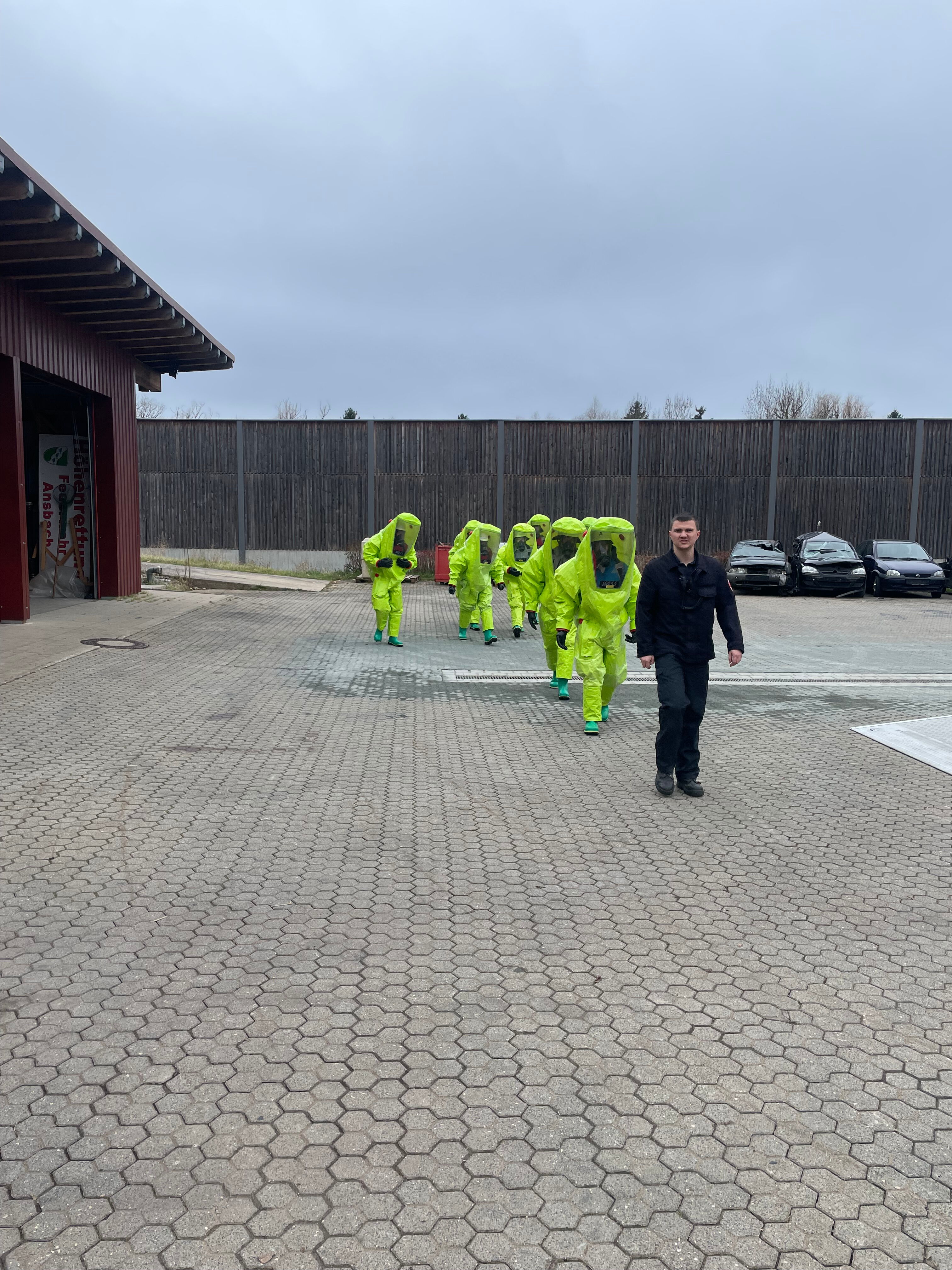 Den Umgang mit den Anzügen bzw. dazugehörige Einsatztaktiken erlernten die Teilnehmer in kurzen Einsatzübungen.