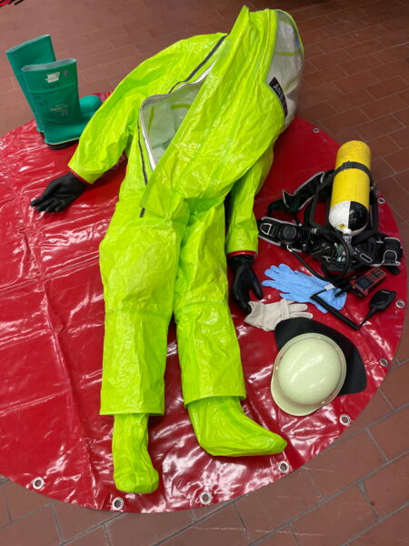 Hauptaugenmerk wurde auf die Chemikalienschutzanzüge gelegt, die neben einem eingeschränkten Sichtfeld auch zusätzliche körperliche und psychische Belastungen mit sich bringen.