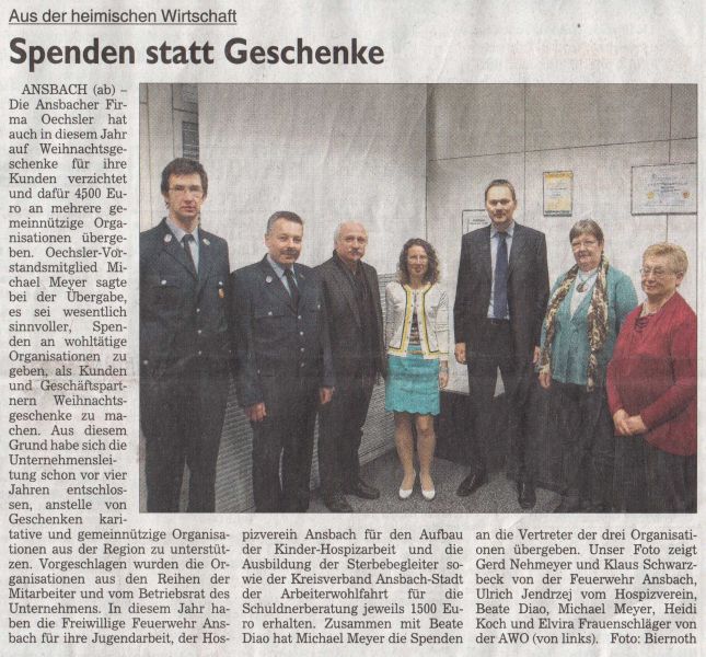 Die Oechsler AG verzichtete zu Weihnachten auf das Versenden von
