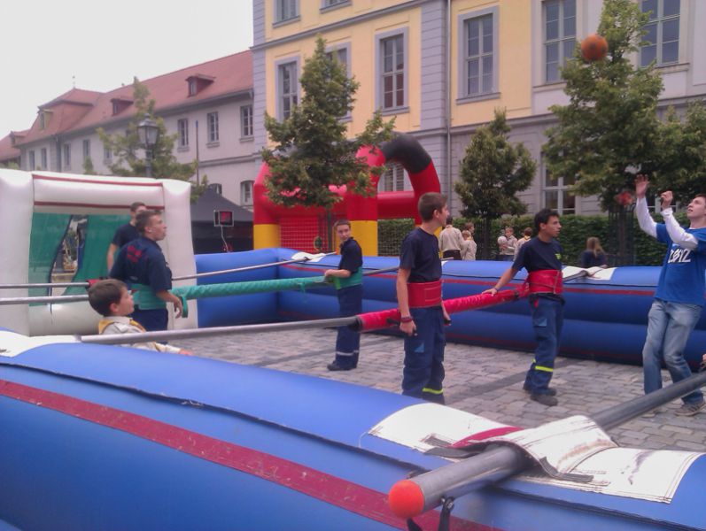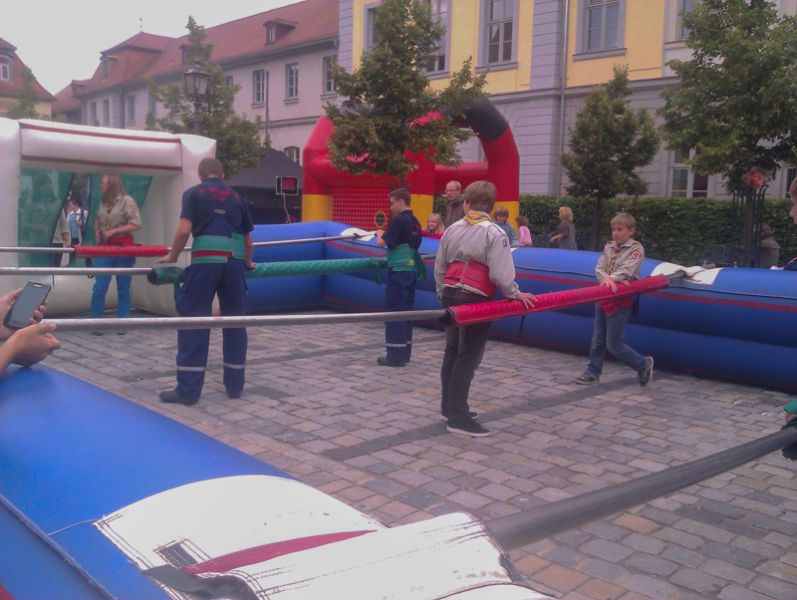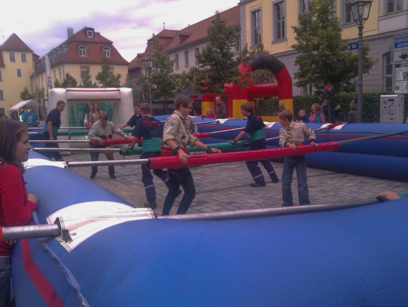 Nicht zuletzt kam aber auch der Spaß nicht zu kurz, beim "Lebend-Kicker" wagte sich unsere Gruppe unter anderem gegen die Jugendlichen der Royal Rangers und des THW ins Feld.