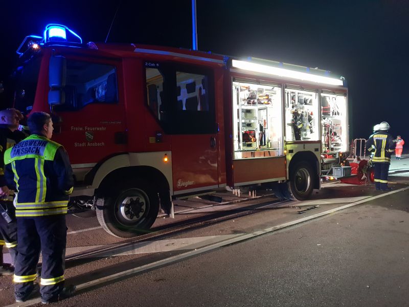Am 13.10.2018 gegen 01:45 Uhr alarmierte die Leitstelle die Feuerwehr Ansbach zu einem Pkw-Brand auf der B14 kurz vor Katterbach.