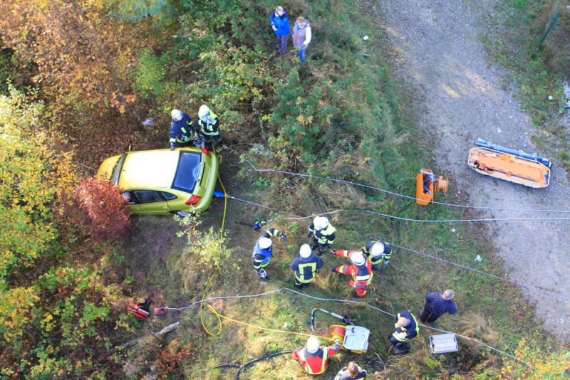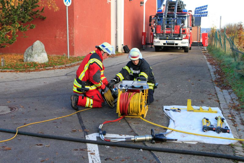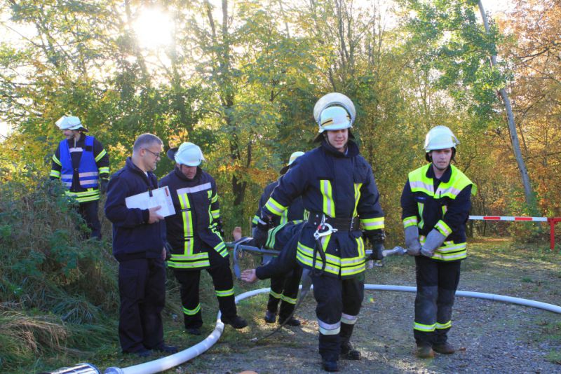 Zum Abschluss dieses Lehrgangs fand am 26.10. noch eine Ganztagesausbildung mit zwei größeren Übungen (technische Hilfeleistung mit Brandbekämpfung sowie Löscheinsatz mit Personenrettung) statt.