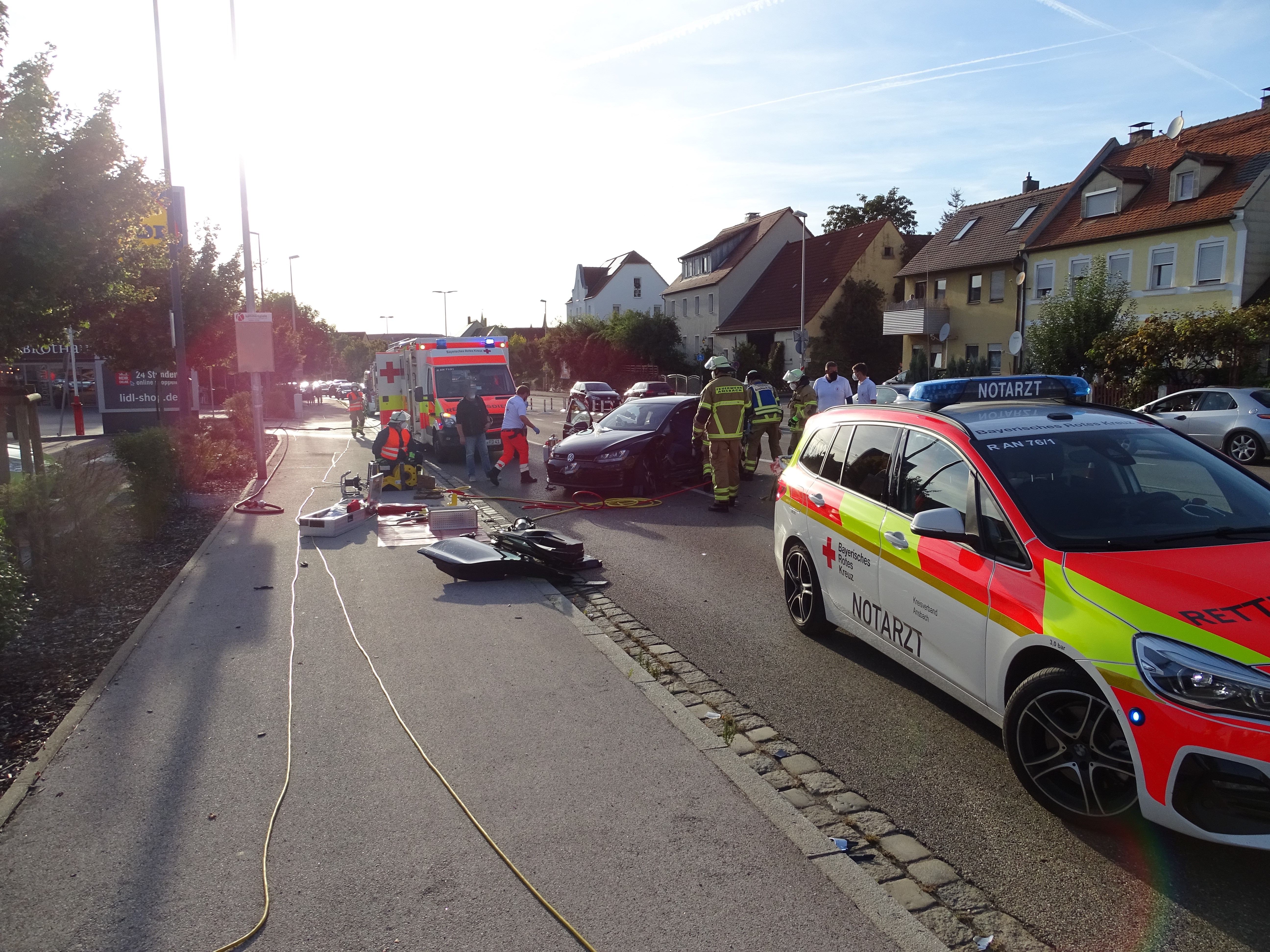 Am 01.10.2021 gegen 17:00 Uhr wurde die Feuerwehr Ansbach zu einem Verkehrsunfall in der Nürnberger Straße in Ansbach alarmiert.