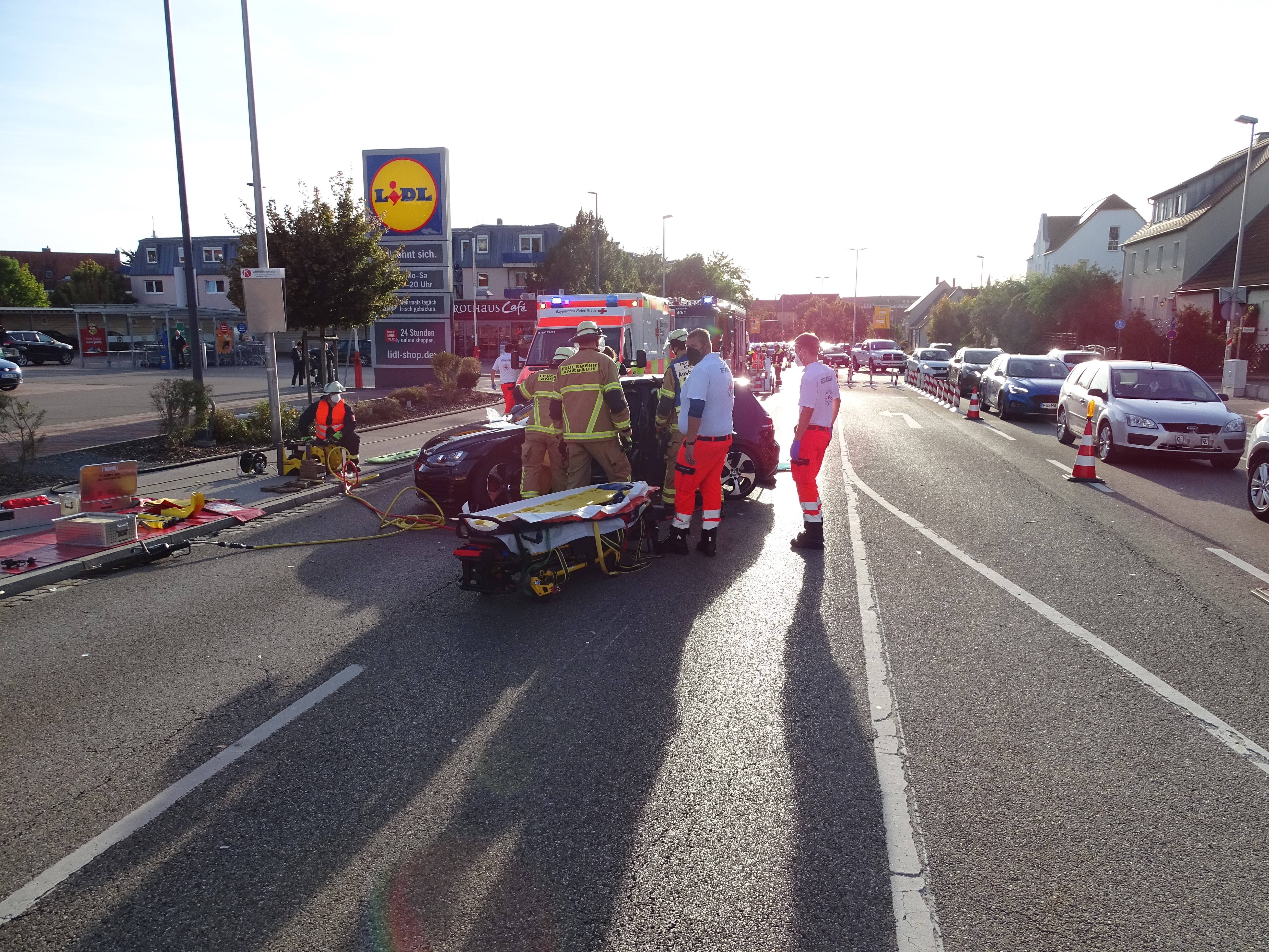 Bei Eintreffen stellte sich heraus, dass zwei Pkw im Bereich einer Ausfahrt erheblich zusammengestoßen waren. In Rücksprache mit dem Notarzt wurde entschieden, dass eine der beiden Unfallbeteiligten aufgrund der Verletzungen schonend aus dem Pkw gerettet werden soll.