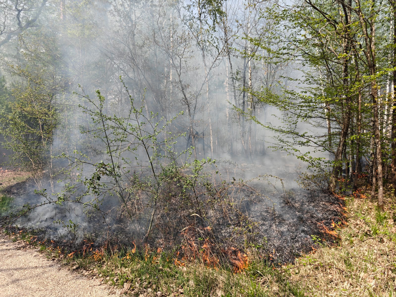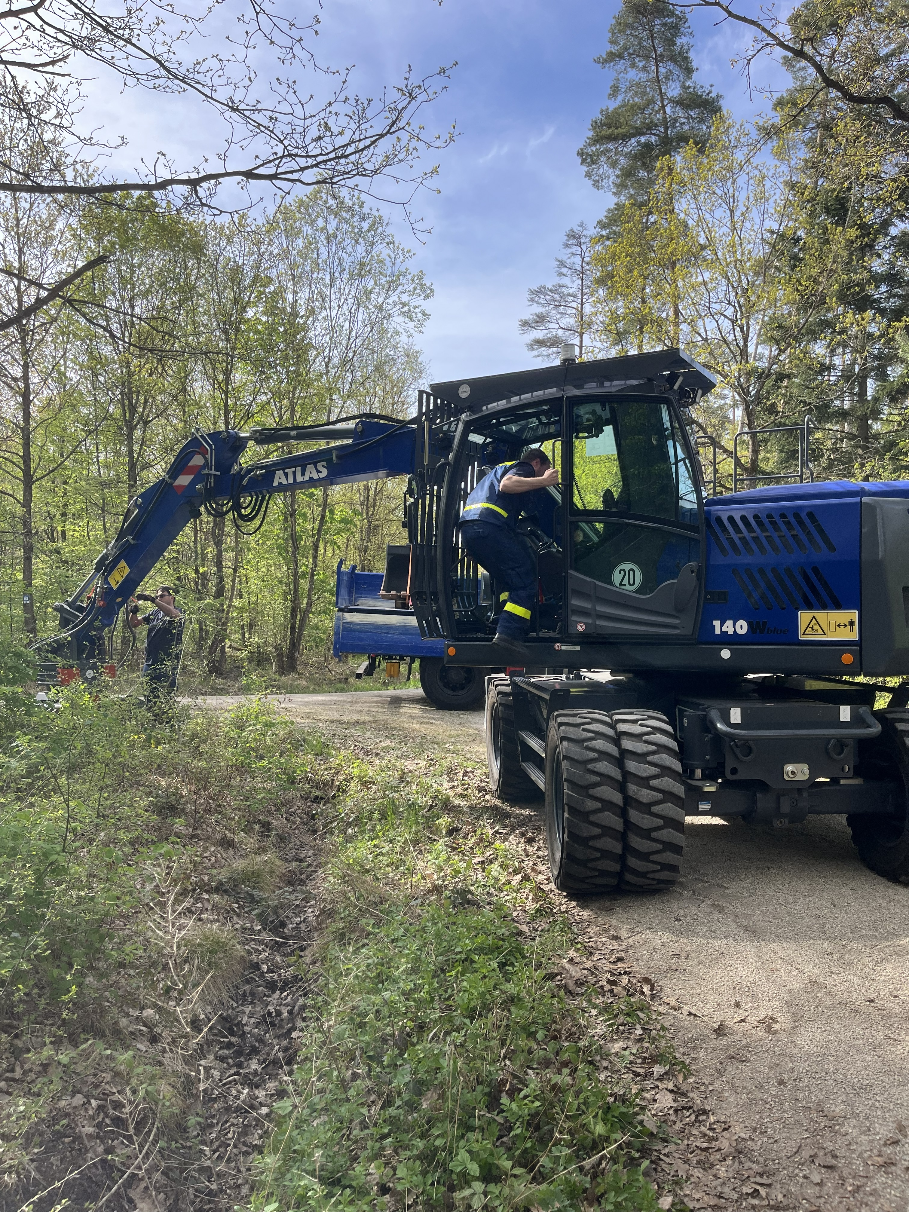 Zur Eindämmung des Brandes wurden durch das THW, sowie ein privates Lohnunternehmen mit Baggern, Schneisen in den Wald gezogen.