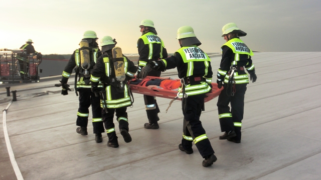 Mittels Drehleiter wurden mehrere Personen vom Dach gerettet, mehrere Trupps unter schwerem Atemschutz drangen in das Gebäude ein, um eine vermisste Person zu suchen und zu retten.