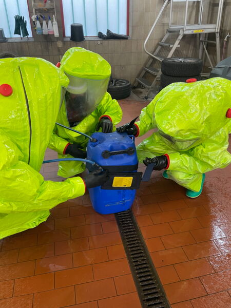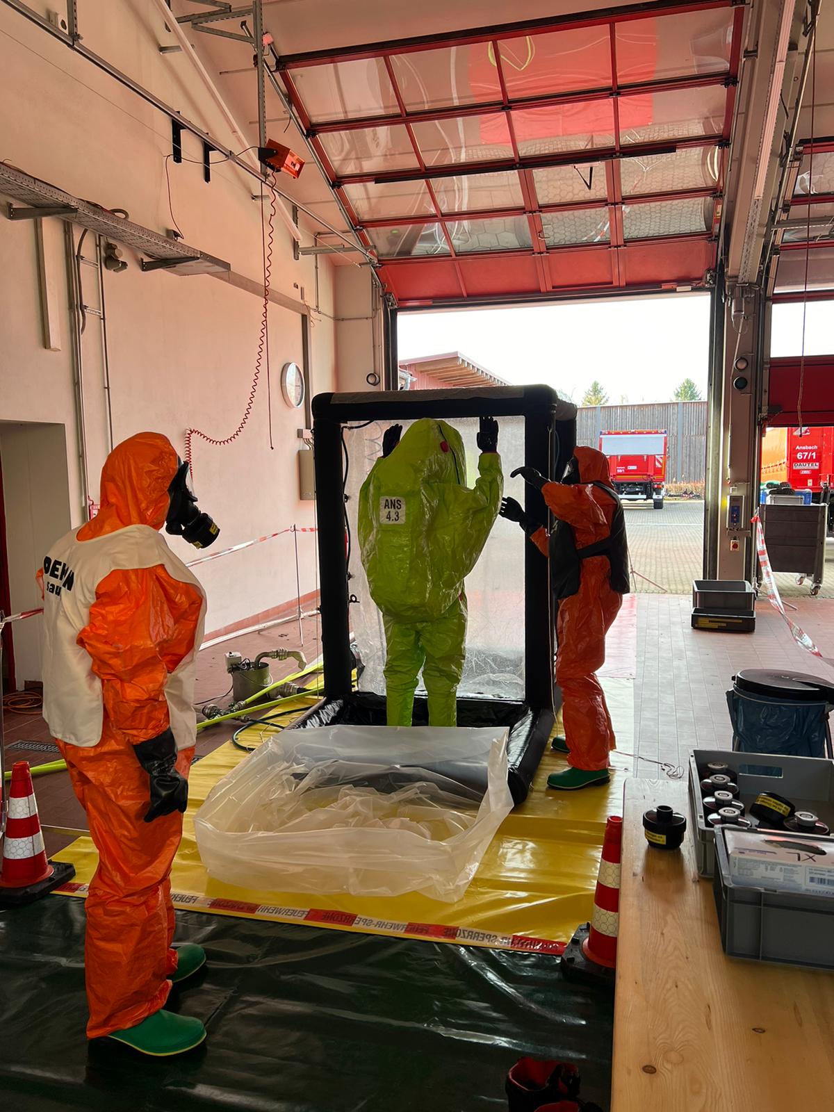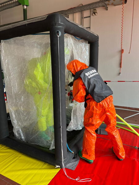 Des Weiteren wurde in den 13 Unterrichtseinheiten das Verhalten im Dekontaminationsbereich geschult.