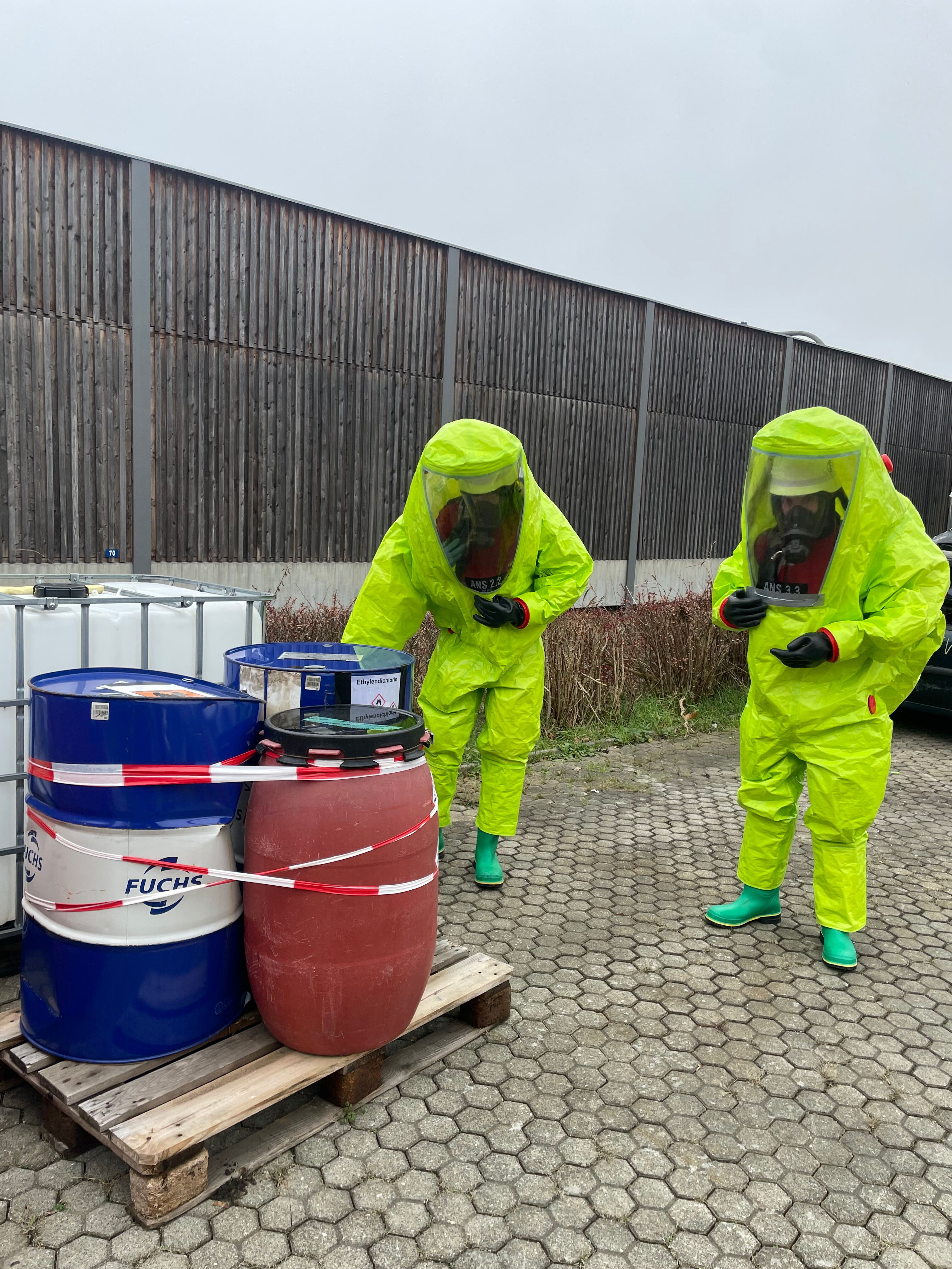 Hauptaugenmerk wurde auf die Chemikalienschutzanzüge gelegt, die neben einem eingeschränkten Sichtfeld auch zusätzliche körperliche und psychische Belastungen mit sich bringen.