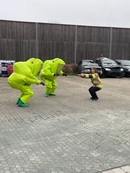 Den Umgang mit den Anzügen bzw. dazugehörige Einsatztaktiken erlernten die Teilnehmer in kurzen Einsatzübungen.