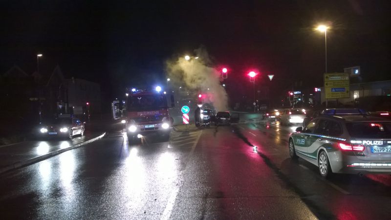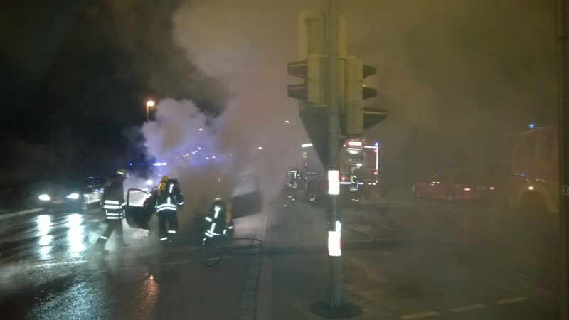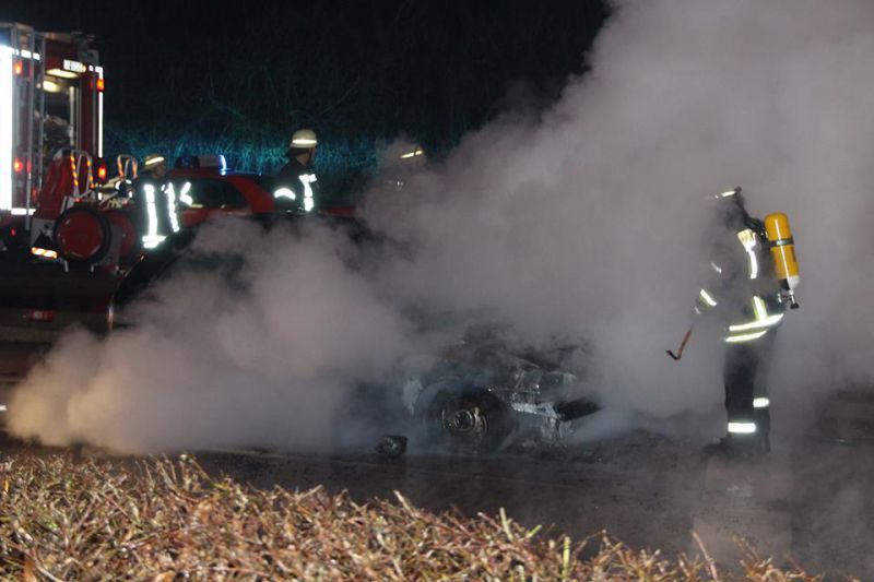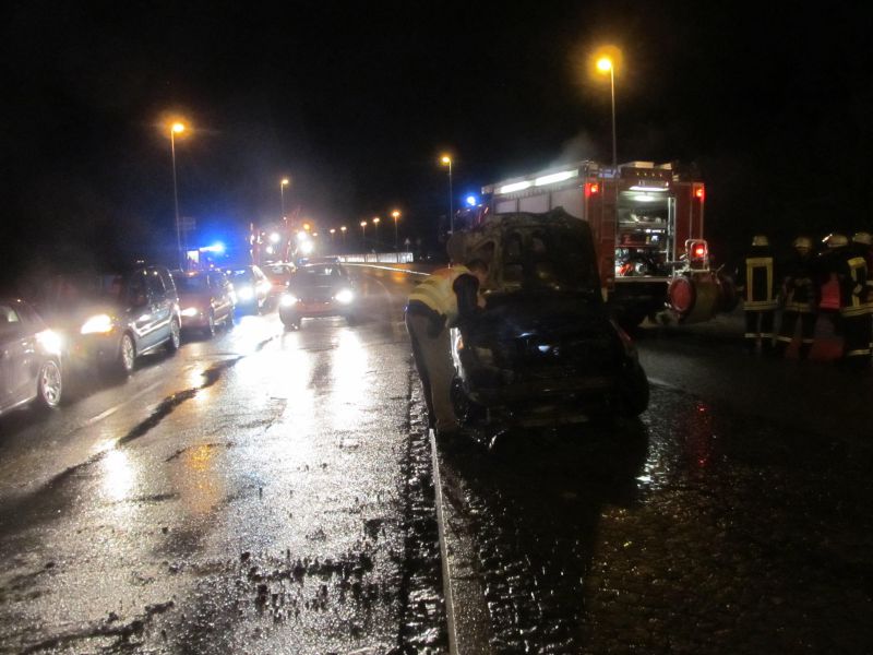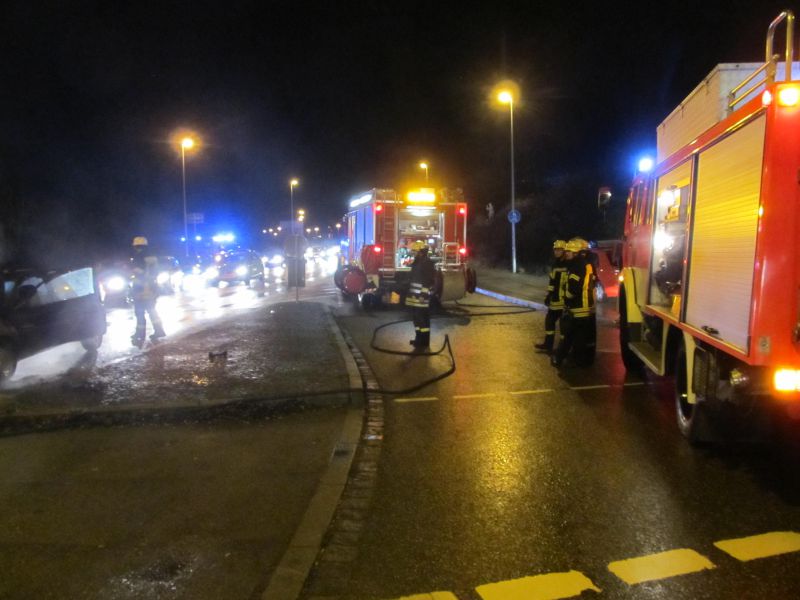 Nach dem Öffnen der Motorhaube wurde das Auto restlos abgelöscht und die Straße konnte für den Verkehr wieder freigegeben werden.