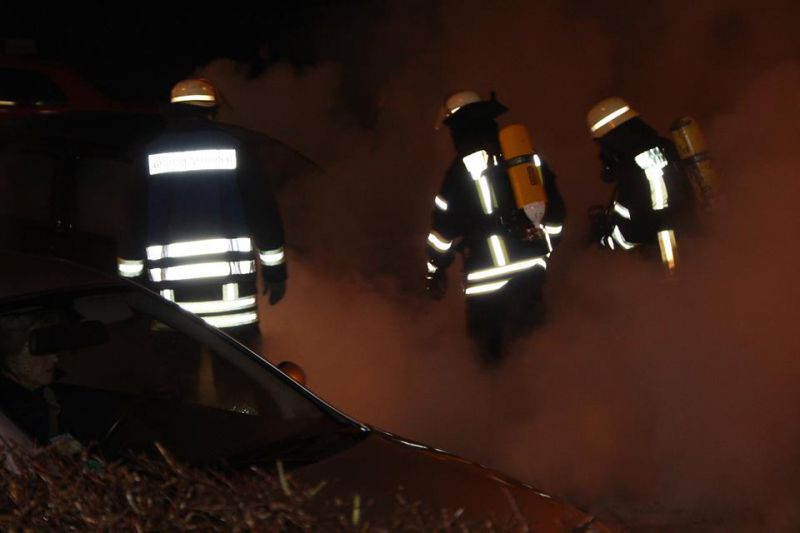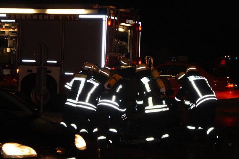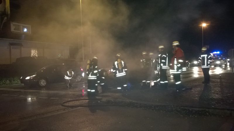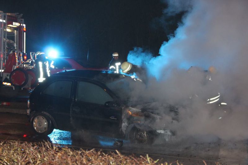 Beim Eintreffen des ersten Fahrzeugs stand der PKW im Bereich des Motorraums in Vollbrand. Mit einem C-Rohr brachte ein Trupp unter Atemschutz das Feuer rasch unter Kontrolle.