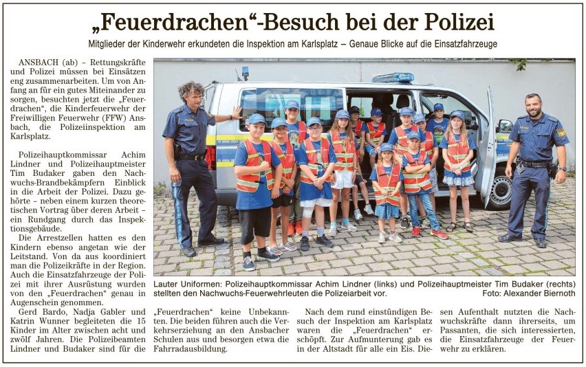 Am Donnerstag, den 14.07.2022, besuchten die Ansbacher Feuerdrachen die Polizeiinspektion Ansbach.