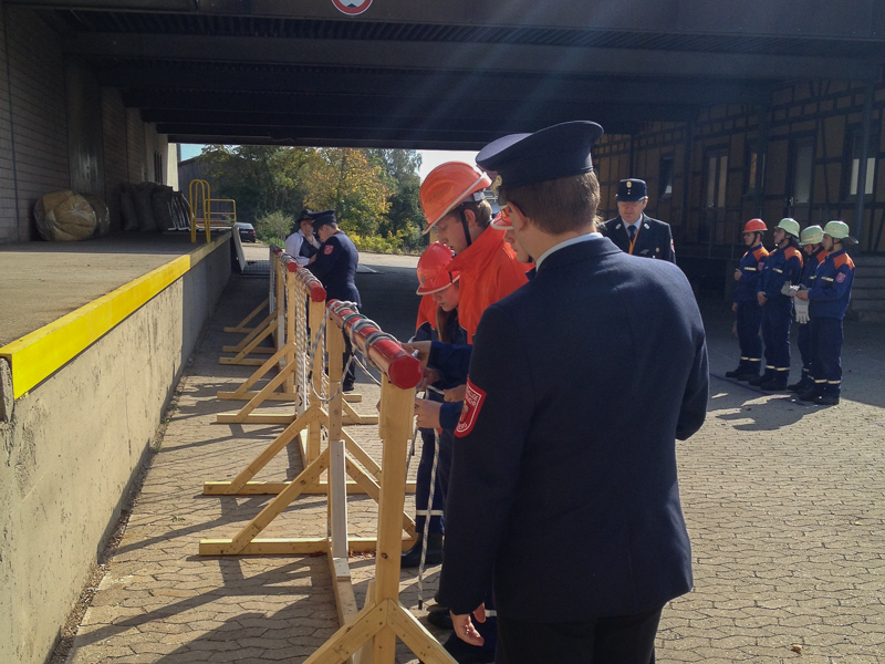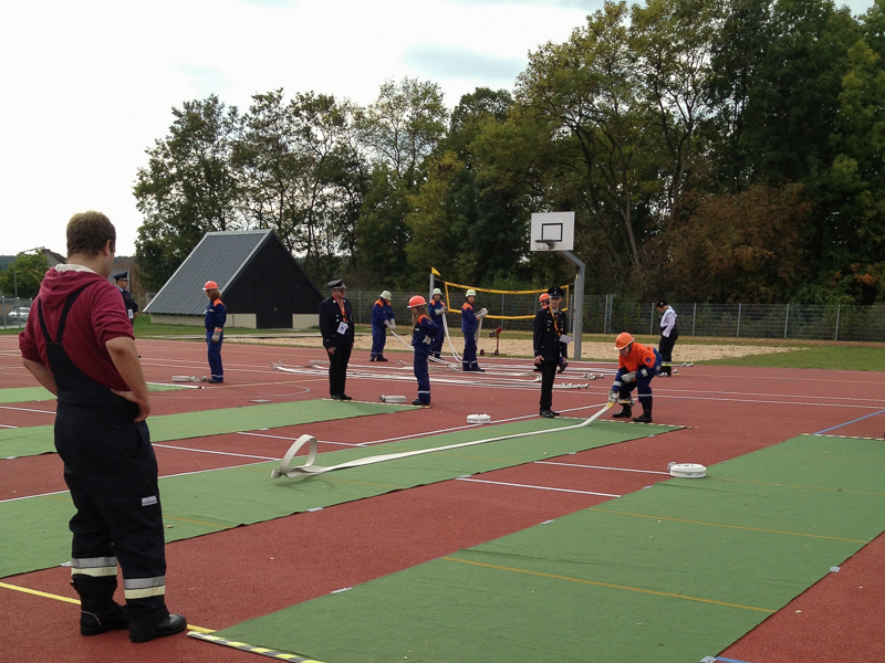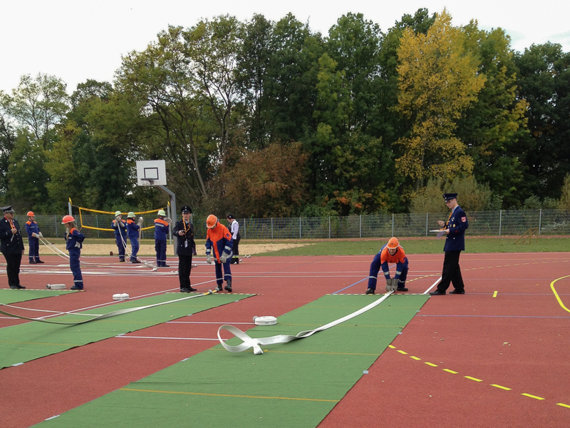Insgesamt nahmen 88 Wettkampfgruppen zu je 4 Jugendlichen teil und mussten sich Disziplinen wie z.B. Fahrzeug- und Gerätekunde, Verkehrsabsicherung, Zielspritzen, Schlauch ausrollen, Erkennen von Dienstabzeichen oder Zielwerfen stellen.